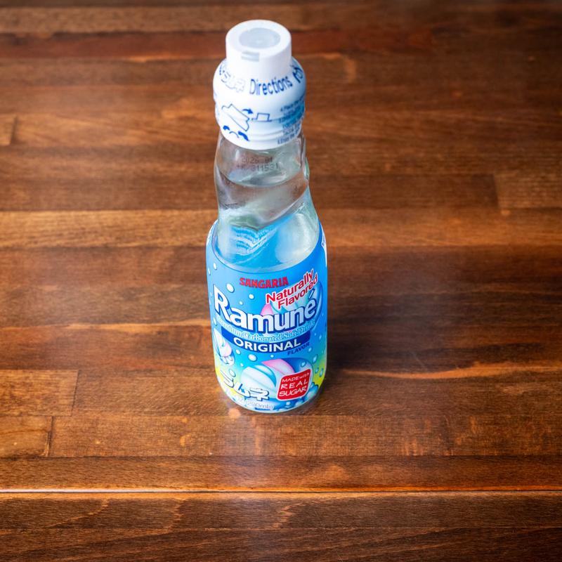 Japanese carbonated soft drink in a distinctive glass bottle with a marble stopper. Original flavor offers a refreshing lemon-lime taste.